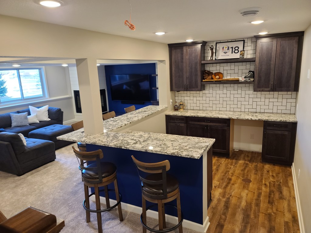 Finishing our basement was a smooth process from start to finish. Corey helped us bring our vision to life, expanding on our ideas to make our space even more functional and beautiful. His crew was always courteous, reliable, and the site was cleaned up every night. Straight Construction worked with us throughout the process, talking through various ideas and solutions. Our custom basement is a space we enjoy every day. We couldn’t be happier and would love to work with Straight Construction again on any future projects.”